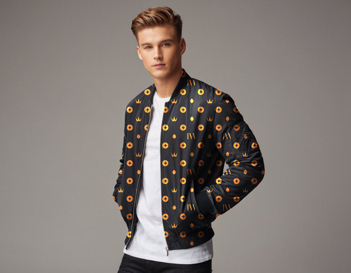 Design: Classic bomber jacket style with two pockets and lycra ribbed hem and cuffs.